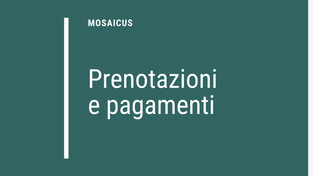 Mosaicus, in conformità con le normative sulla trasparenza e tracciabilità delle transazioni, prevede il pagamento online per tutte le sue iniziative culturali, evitando pratiche come il pagamento in contante in loco, che potrebbero nascondere situazioni di evasione fiscale o pagamenti irregolari alle guide turistiche.
